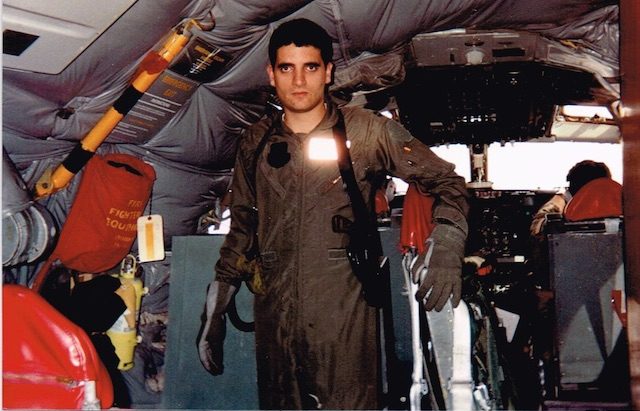 On Nov. 1, 1990, Belmonte deployed to Saudi Arabia during Operation Desert Shield, flying more than 40 missions through Jan. 15, 1991. He also flew 39 combat support missions in Operation Desert Storm from Jan. 17 through the cease-fire on Feb. 28. He was based at King Khalid International Airport, Riyadh, Saudi Arabia, with the 1703rd Air Refueling Wing. Desert Shield involved regular stretches of flying and time off. Desert Storm was more intense, with no typical schedule. “You’d have your mission planning, pre-flight take off, do your mission, land, post-flight, try to get maybe a bite to eat, some coffee, try to get some sleep and start over again,” Belmonte says. “You slept when you could, and you ate when you could.”