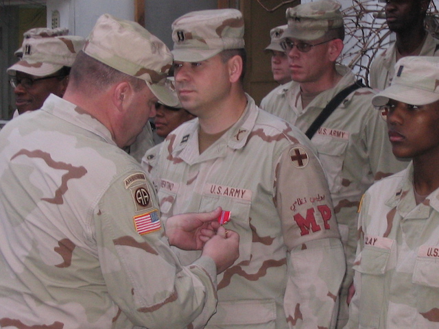 He married Lauren Attore in 1995 and worked full time as a Cook County juvenile probation officer. Meanwhile, he was training weekends and doing two-week summer stints with the National Guard, traveling between Ft. McCoy, Wis., and Camp Atterbury, Ind. During this time, he became a battery commander for the Air Defense Artillery Unit, primarily training soldiers to tactically and technically use stinger missiles. He was promoted to captain in 2000.