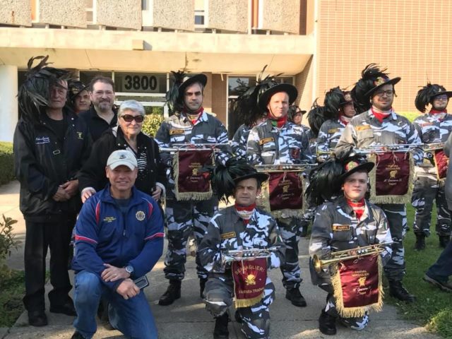 Board member Lorenzo Fiorentino gave a private tour of the Italian American Veterans Museum to members of the Fanfara dei Bersaglieri while they were in town for the Columbus Day Parade. The Fanfara dei Bersaglieri is an elite Italian military band known for its plumed hats and tradition of running in formation while performing. Fiorentino was honored by the Bersaglieri for combat operations that he conducted with them while he was deployed to Afghanistan.